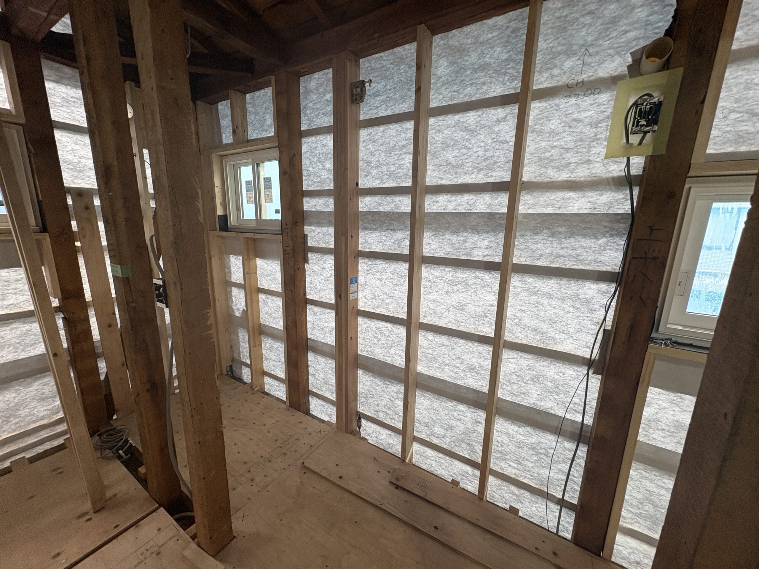 既存の建物の間取り変更を行い、耐震診断をし、必要な個所に入れています。