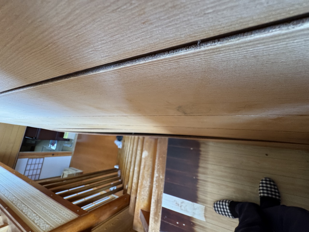 階段が少しずれて、開いてきました。