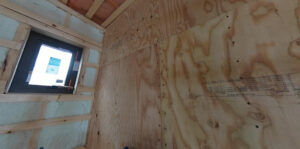 壁一面にベニヤ(合板)をしっかり張っています。